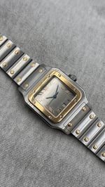A beautifully preserved Cartier Santos Galbée 1566 featuring the sought-after grey dial, a colourway that brings a modern and sophisticated twist to this iconic model. With its elegant 29 mm case and harmonious curved profile, the Galbée design offers exceptional comfort on the wrist while retaining the unmistakable character of the Santos line.